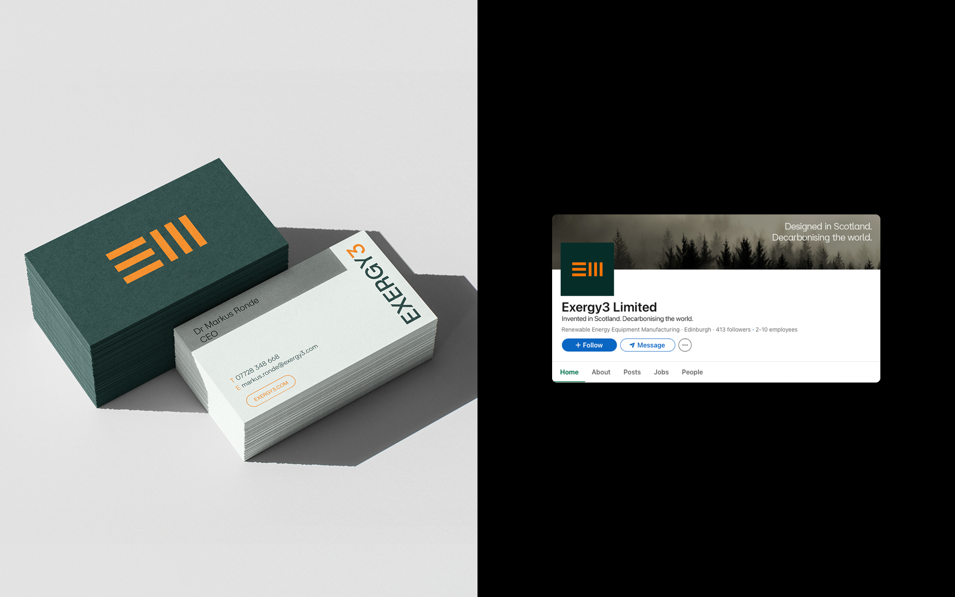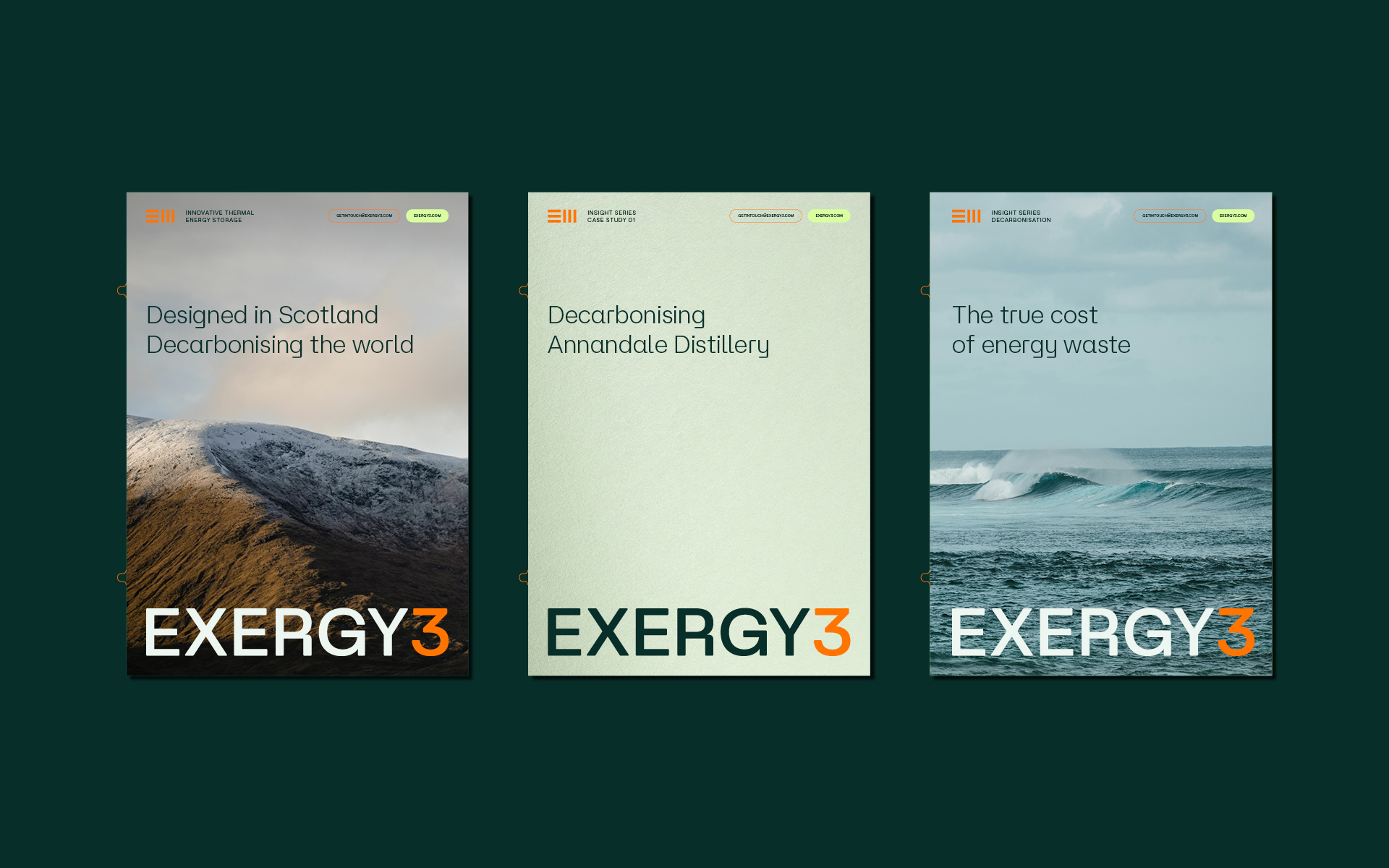 Exergy3 are a team of expert engineers, scientists and professionals committed to building a greener world. The Scottish spin out team from Edinburgh University have developed an industry changing thermal energy storage device which stores heat at temperatures up to 1200ºC with less than a 1% thermal loss per day. With their first major installation on the horizon, Exergy3 approached us to redevelop their existing brand and website as they prepare to take the sector by storm.