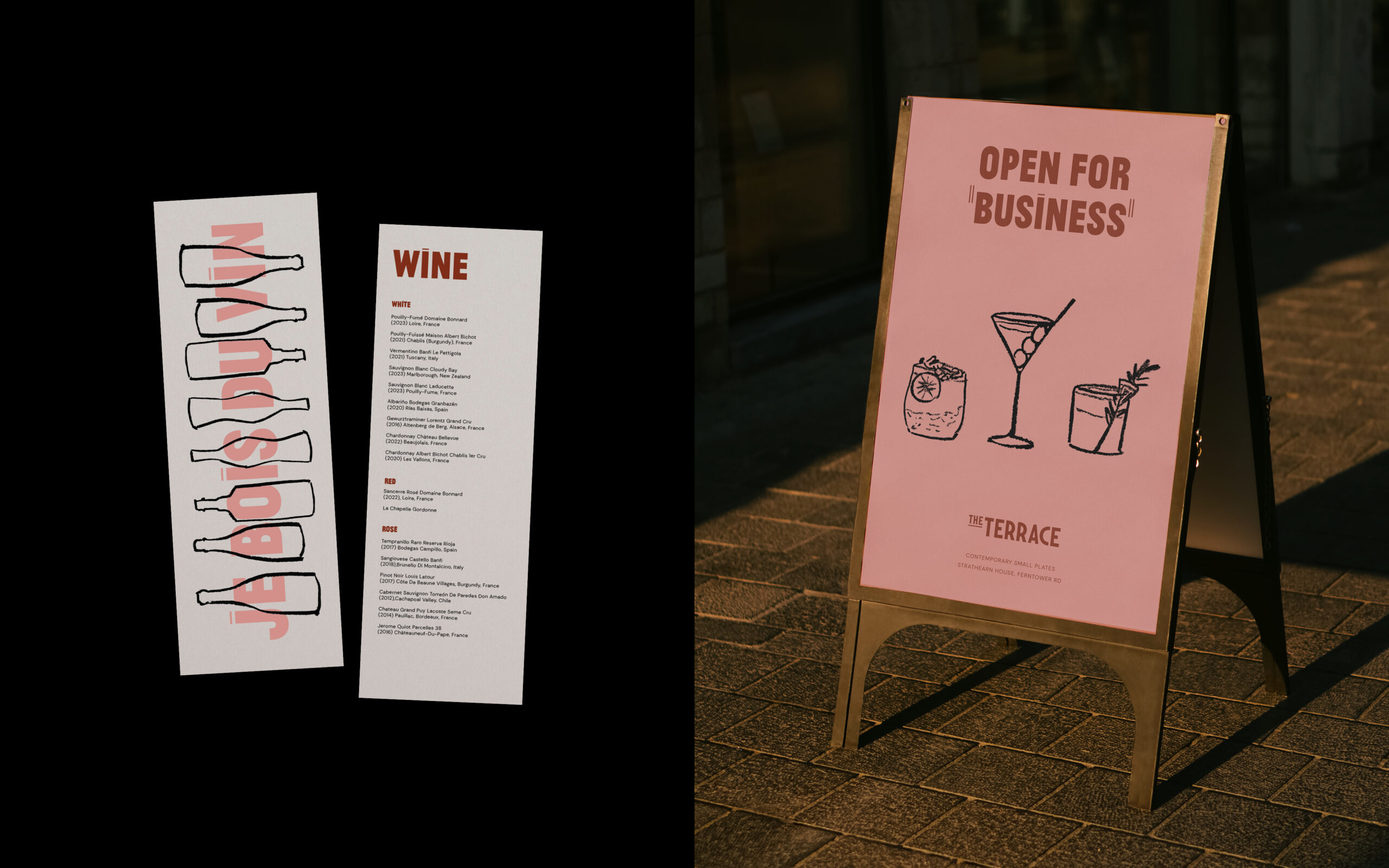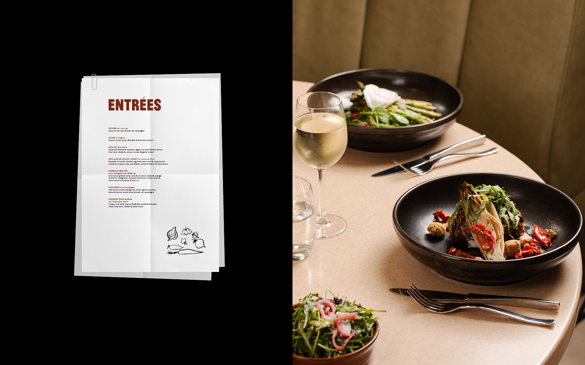 The concept draws inspiration from the hustle and bustle of Paris, the logotype references the typography of Parisian street signs. Complemented by hand drawn illustrations from Glasgow artist Clare Findon, our aim was to bring a light hearted and contemporary take on the classic French brasserie. A relaxed tone of voice was introduced to help differentiate the atmosphere from the other F&B outlets of the hotel.